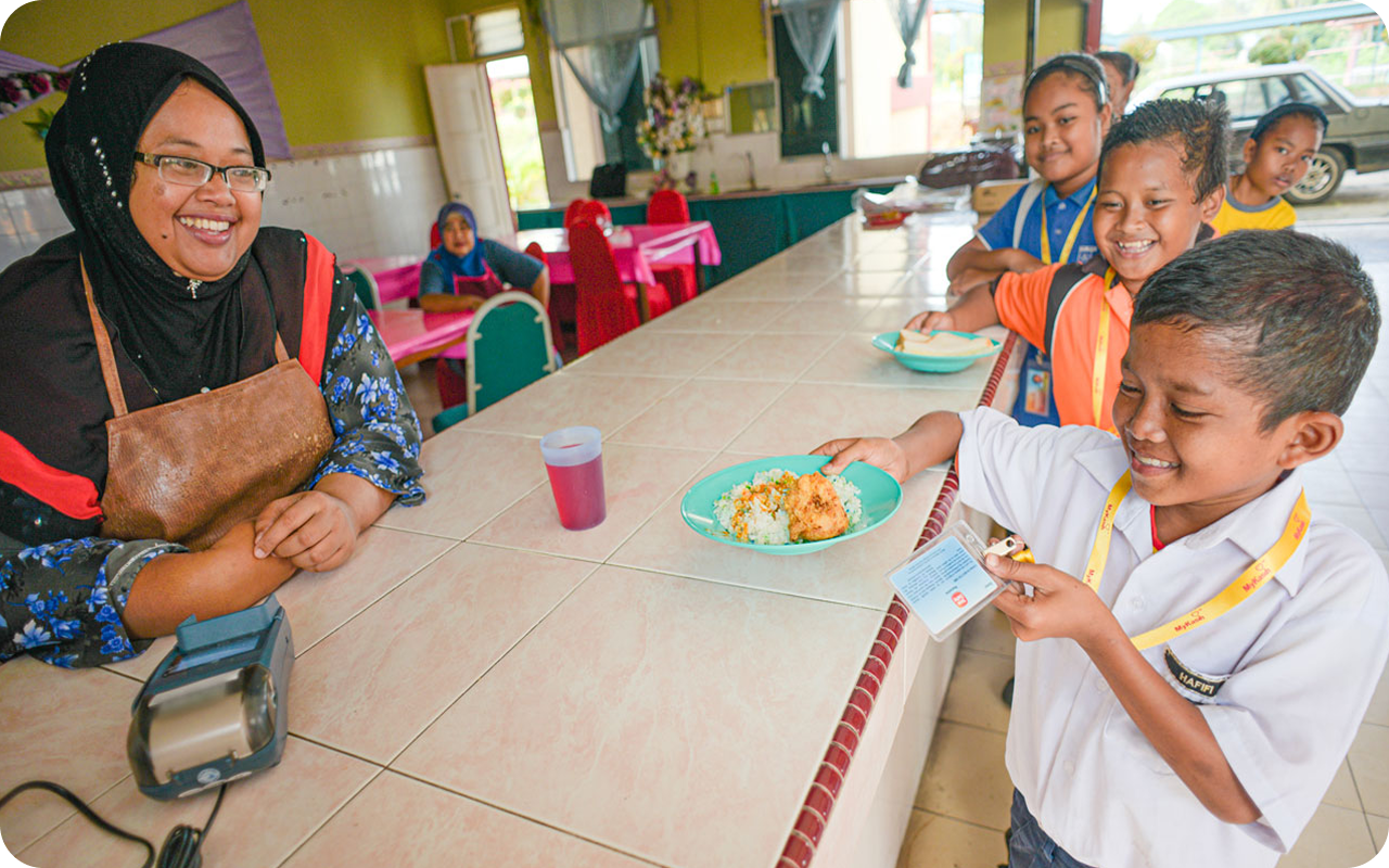 Recipients present their MyKad at the retailer for verification through a card terminal linked to MyKasih’s recipient database, authorising the purchase.